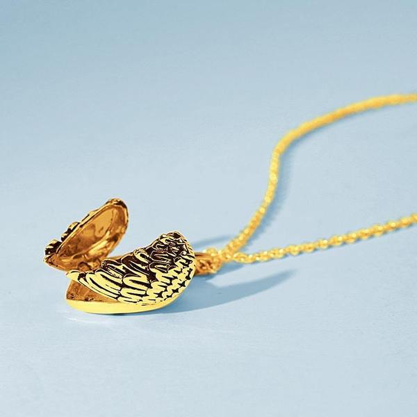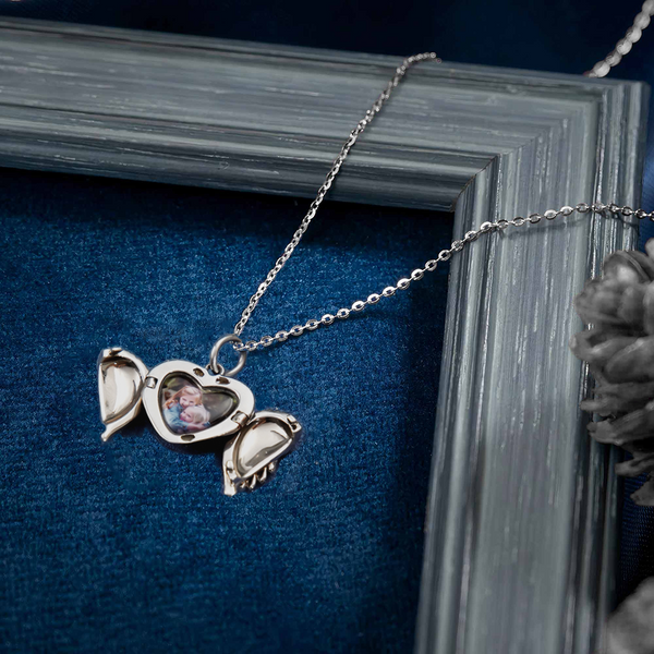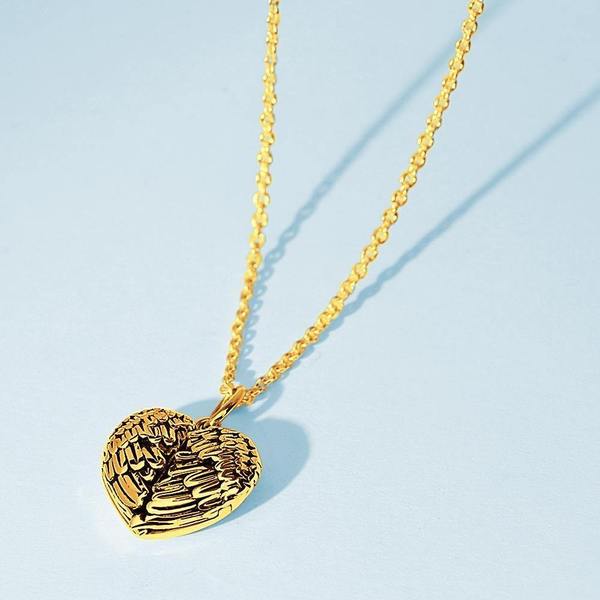 Photo For Locket Picture Necklace Heart Engraved Locket Angel Wings for Girlfriend Gold Plated