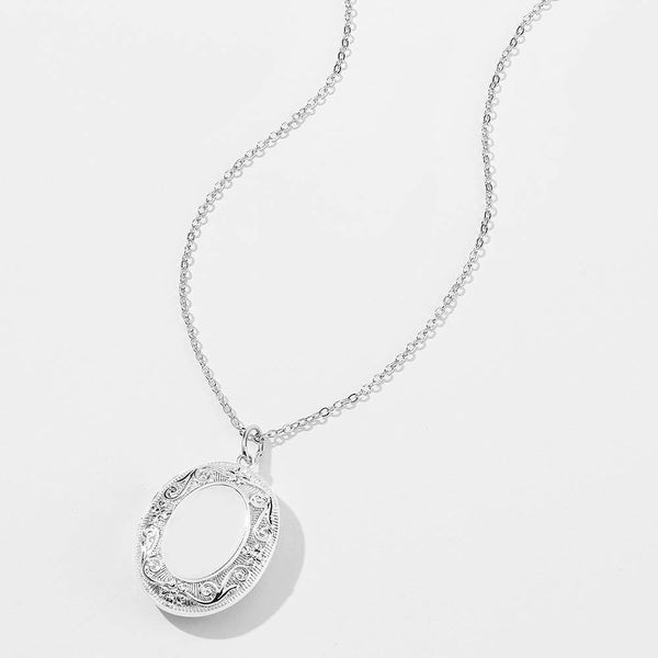 Photo In Necklace Custom Locket Pendant Embossed Oval With Engraving Platinum Plated Anniversary Gift