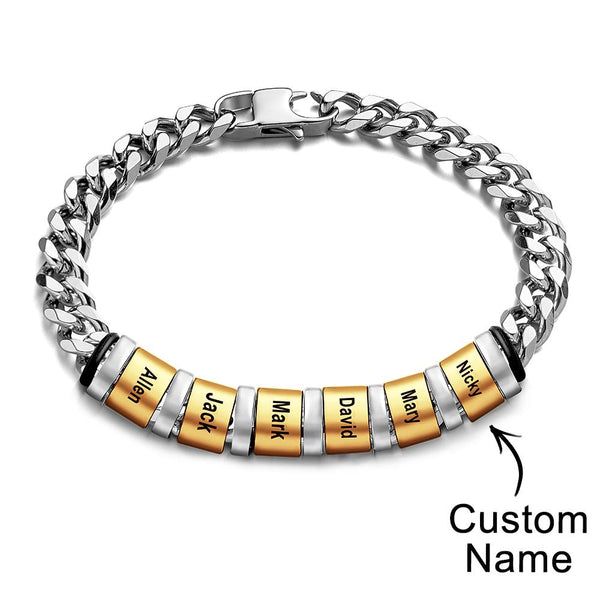 Custom Engraved Name Bracelet Women Men Silver Gold Stainless Steel Mothers Day Jewelry Fathers Day Gift