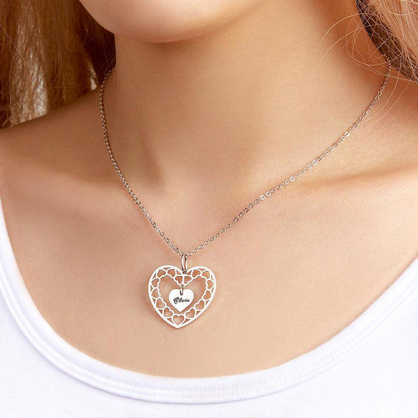 Custom Engraved Necklace heart-shaped necklace to give her a gift. This necklace is composed of multiple hearts. You can customize the text in the center of the necklace. Let's give such a necklace to your lover, your friends and your family. I'm sure they will be surprised and like this gift.