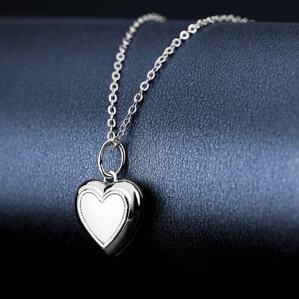Photo Locket Necklace Custom Heart Printing Picture Pendant With Engraving Platinum Plated
