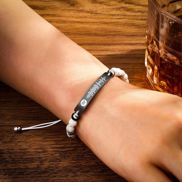 Engrave your Song Code Bracelet in easy steps. This is a unique gift for yourself or Friends or loved ones in your life.- Color: Black