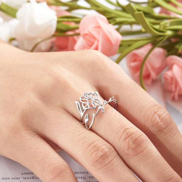 Custom Name Birth Month Flower Ring Dainty Floral Jewelry Birthday Gift November Chrysanthemum