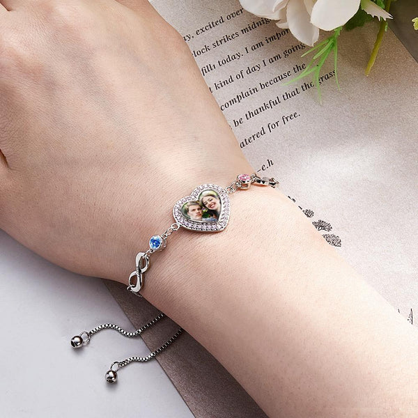 Custom Photo Engraved Birthstone Bracelet Infinite Love Delicate Gifts