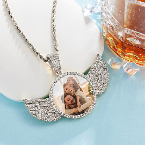 Custom Photo Necklace with Wing Medallions Pendant Jewelry Gift with Angel Wings Silver