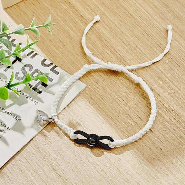 Magnetic photo projection bracelets are a fun and fashionable way to personalize your look. Not only do these items look sleek and stylish on their own, but they look fantastic after having your photo on. Coming with a delicate heart-shaped magnetic that shows mutual attraction when getting closer. These couples bracelets are symbolizing the eternal love and friendship between lovers or friends. This matching heart bracelet for couples comes with an adjustable band that allows wearers to create the perfect fit for them. Suitable for any occasion.