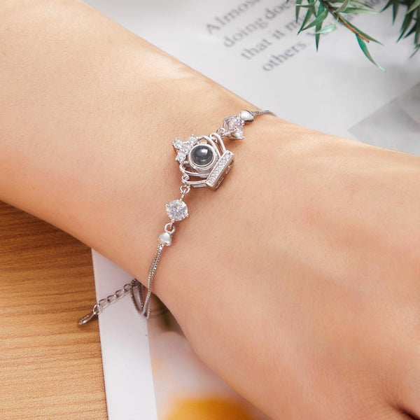 Custom Photo Projection Crown Bracelet Personalized Sterling Silver Bracelet