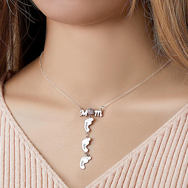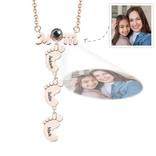 Custom Projection Engraved Necklace Funny Feet Mother's Day Gifts