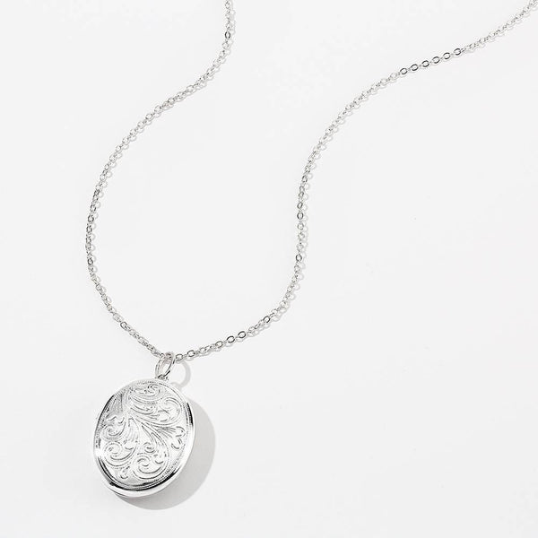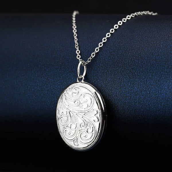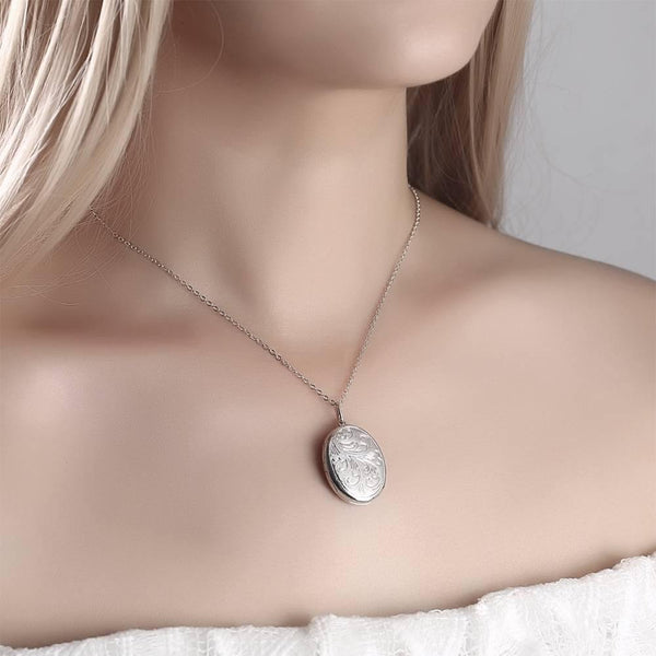 Personalized Locket Gift Necklace With Picture Embossed Oval With Engraving Platinum Plated