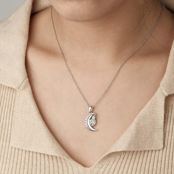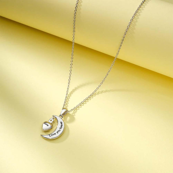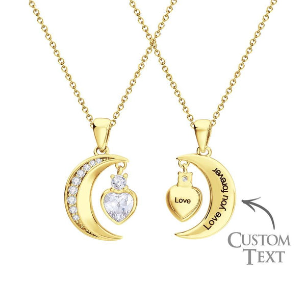 Engravable Zircon Moon Necklace With Heart Birthstone Pendant Jewelry Gifts For Her