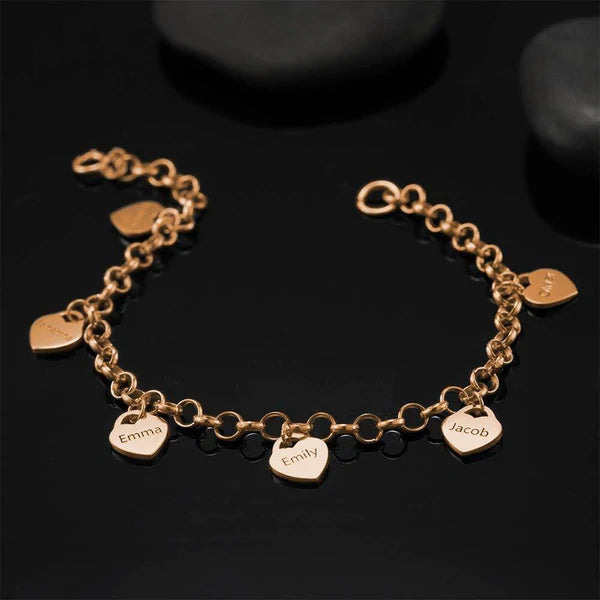 - Engravable bracelets are a fun and fashionable way to personalize your look. They are given different finishes so that you can purchase silver bracelets, yellow gold bracelets, and rose gold bracelets. These designs come in different widths from super skinny to thicker and bolder. The cuff styles can be slipped on and off very easily. These items can be engraved with everything from names and nicknames to dates and favorite words. What’s great about these designs is that they look minimalist and sleek when worn alone, but also look fabulous when stacked up. Engravable jewelry like this also make for great gifts for loved ones in your life. Soufeel has a ton of customized jewelry options that are reasonably priced and make for great gifts for all sorts of occasions like birthdays, holidays, anniversaries,Christmas Gift, mother's gift, best friend's gift, lover's gift. Engraved Bracelet, Name Bracelet with Heart Rose Gold Plated.