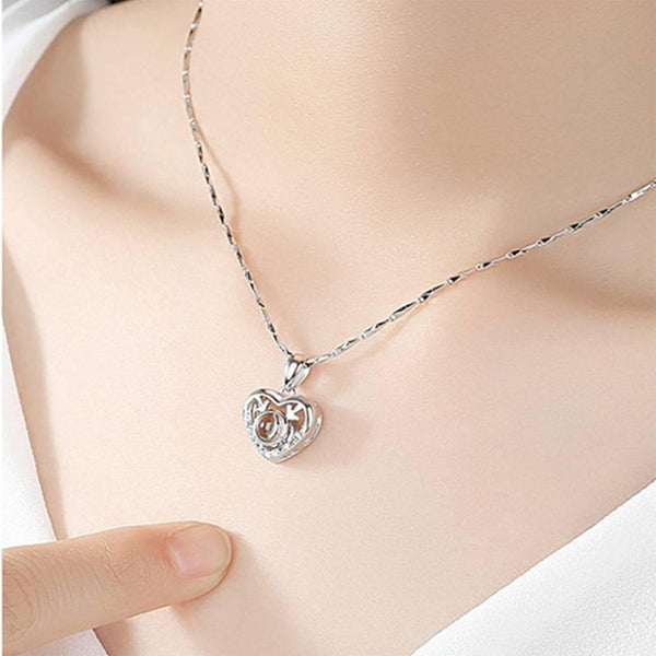 I Love You Necklace in 100 Languages Projection Photo Engraved Necklace Heart with Antlers Silver