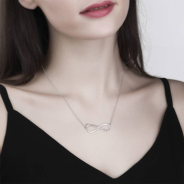 - How sweet is this Infinity Name Necklace? It is a stylish design that looks stunning on its own or layered with other necklaces for a bolder look.