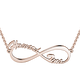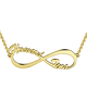 - As a sweet gift idea, BFFs or couples could get their names put on one infinity symbol. This infinity necklace is available for purchase in .925 sterling silver, rose gold, and 14K yellow gold plated.