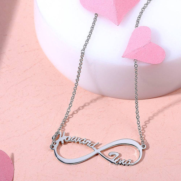- How sweet is this Infinity Name Necklace? It is a stylish design that looks stunning on its own or layered with other necklaces for a bolder look.