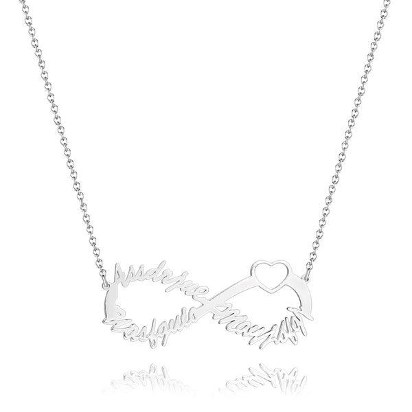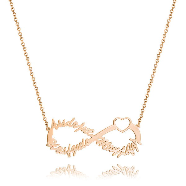 When it comes to name necklaces, name necklaces in Name Necklace Official is your best choice. Show your name on a necklace which can always be with your love as if you are around her. Classic glossy design never goes out of style. Personalized jewelry is wonderful because it is unique and has meaning to the wearer. As a sweet gift idea, BFFs or couples could get their names put on one infinity symbol. This infinity necklace is available for purchase in. Different kinds of materials to choose from copper in silver, rose gold and 14K gold plated. There is always a suitable for you. This handmade name necklace would make the perfect gift for your loved ones, friends or yourself! Four Lengths: 15 in (37.5 cm), 15.8 in (40 cm), 16.5 in (42.5 cm) and 17.7 in (45 cm).