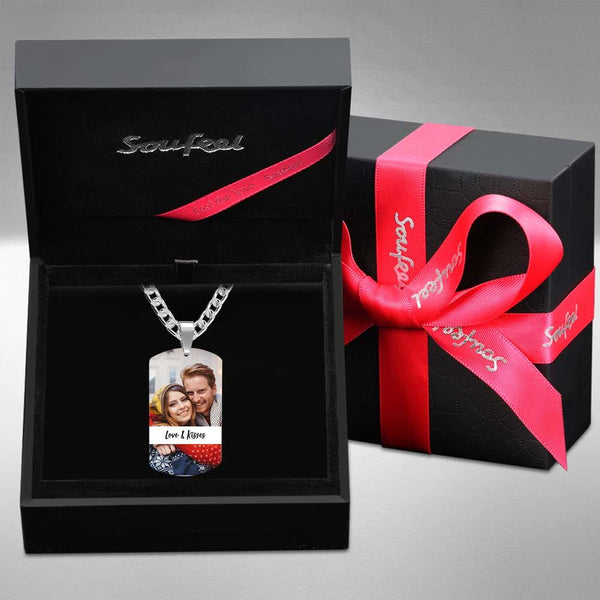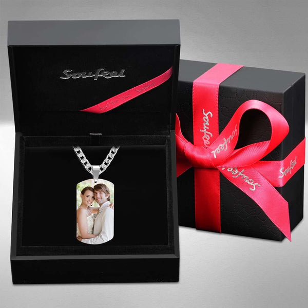 Personalized Soufeel Stainless Steel Tag Photo Pendant is the perfect way to keep your greatest memories close to the soul. This custom photo necklace is made of sturdy, stainless steel that will never tarnish so you can hold it close for many years to come. The perfect thoughtful, fun, and unique gift for any occasion! Soufeel has a ton of customized jewelry options that are reasonably priced and make for great gifts for all sorts of occasions like birthdays, holidays, anniversaries, Father's Day. Mens Necklace, Engraved Necklace, Personalized Photo Necklace.