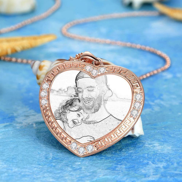 Necklace With Picture Inside Photo Engraved Necklace Personalized Rhinestone Crystal Heart Shape Rose Gold Plated