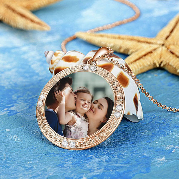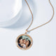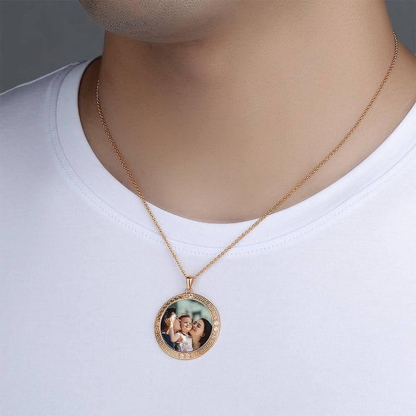 Men's Personalized Rhinestone Crystal Round Shape Photo Engraved Necklace Rose Gold Plated - Colorful