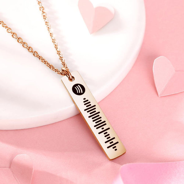 Personalized Bar Necklace Spotify Code Necklace Custom Music Spotify Scan Code Stainless Steel Necklace Rose Gold