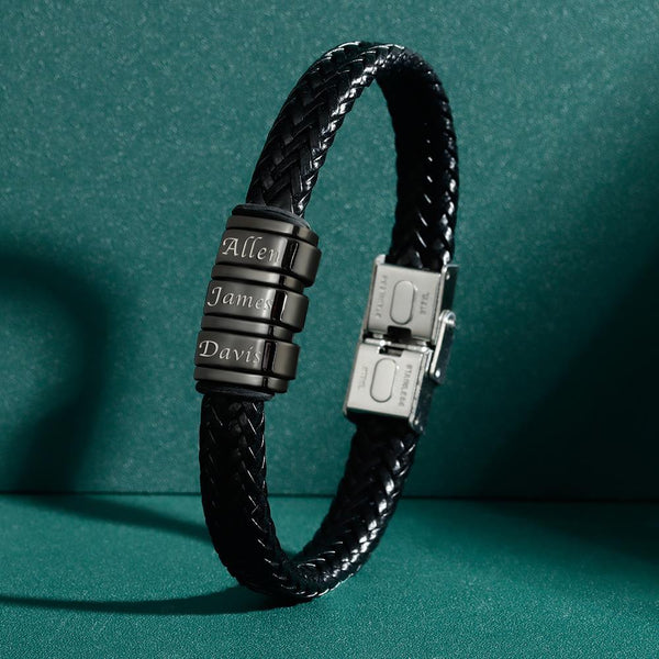 Men's Leather Bracelet Personalized Bracelet for Men, Gift for Dad Kids Name Bracelet 1-6 Charms