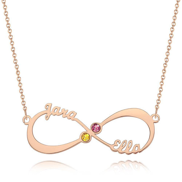 Name Necklace with Birthstone Infinity Necklace Rose Gold Plated