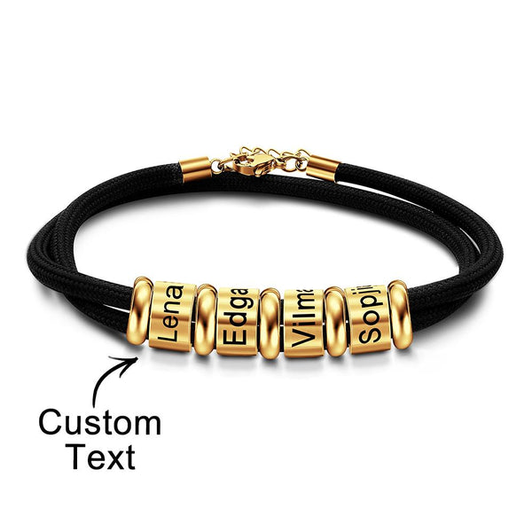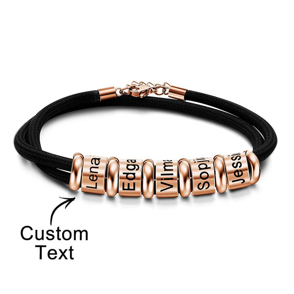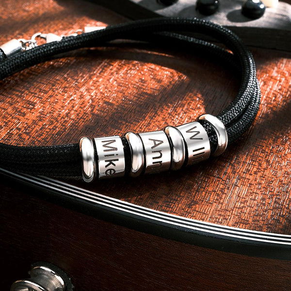 Personalized Engraved Beads Braided Bracelet Custom Name Bracelet Father's Day Gift