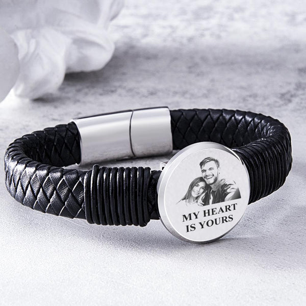 Personalized Photo Leather Wide Bracelet Engraved Unique Bracelet Gifts For Him
