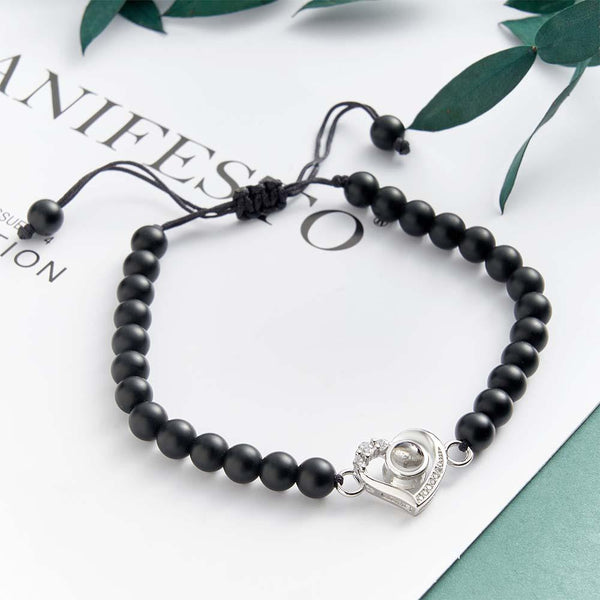 Personalized Photo Projection Beads Bracelet Heart-Shaped With Rhinestones Special Gift For Her