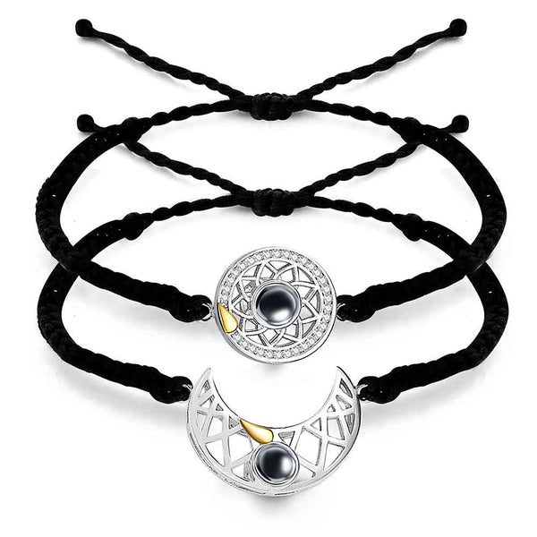 Personalized Photo Projection Bracelet Sun And Moon Braided Rope Bracelet For Couples