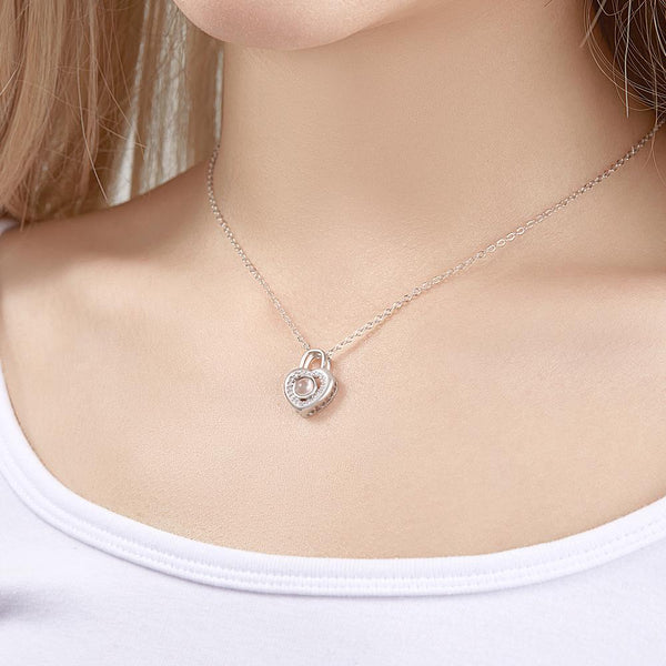 Personalized Photo Projection Necklace Love Heart Lock Shaped Pendant Valentine's Day Gift