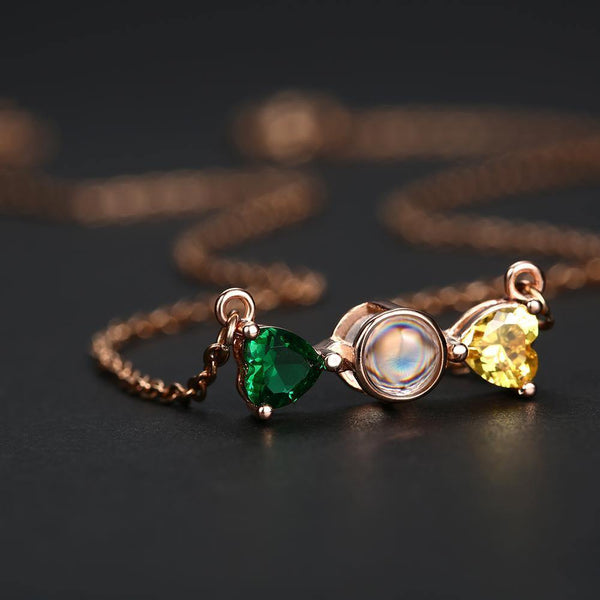 Personalized Projection Photo Bow Necklace Rose Gold