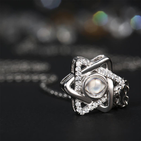 Projection Necklace Six Star Photo Necklace Heart Pendant Gift For Women I Love You Necklace 100 languages