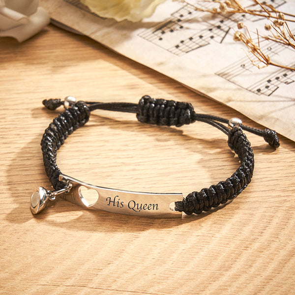 Personalized Stainless Steel Braided Rope Adjustable Hollow Heart Couples Matching Bracelets