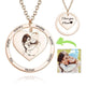 Photo Engraved Necklace Heart In Round Pendant, Family Necklace Platinum Plated - Silver