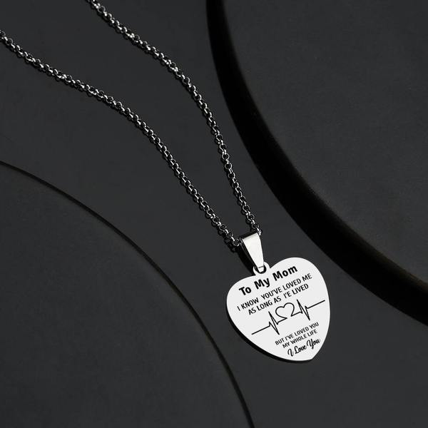 Photo Engraved Tag Necklace Heart-shaped with Engraving Stainless Steel Gifts for Mom