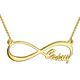 This is a single name infinity necklace, waiting for the other to come out. It is a stylish design that looks stunning on its own or layered with other necklaces for a bolder look. From a delicate, but strong chain, hangs an infinity pendant that can be personalized with 3-6 letters. Some great options include names, inspirational words, and short messages. Personalized jewelry is wonderful because it is unique and has meaning to the wearer. This infinity necklace is available for purchase in .925 sterling silver, rose gold and 14K gold plated. The metal of this style has been given a smooth polish, which allows the metals to shine brightly and richly. Four Lengths: 15 in (37.5 cm), 15.8 in (40 cm), 16.5 in (42.5 cm) and 17.7 in (45 cm).