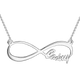 This is a single name infinity necklace, waiting for the other to come out. It is a stylish design that looks stunning on its own or layered with other necklaces for a bolder look. From a delicate, but strong chain, hangs an infinity pendant that can be personalized with 3-6 letters. Some great options include names, inspirational words, and short messages. Personalized jewelry is wonderful because it is unique and has meaning to the wearer. This infinity necklace is available for purchase in .925 sterling silver, rose gold and 14K gold plated. The metal of this style has been given a smooth polish, which allows the metals to shine brightly and richly. Four Lengths: 15 in (37.5 cm), 15.8 in (40 cm), 16.5 in (42.5 cm) and 17.7 in (45 cm).
