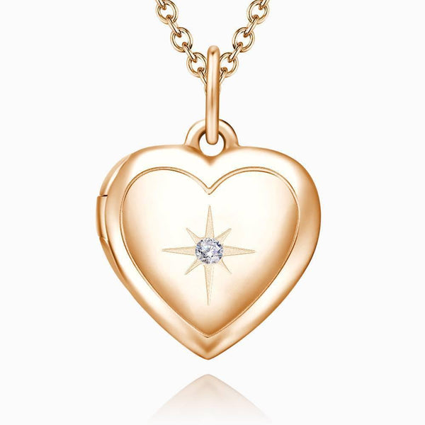 Photo Locket Necklace Your Photo Necklace Engraved Locket Pendant Star Printing Rose Gold Plated
