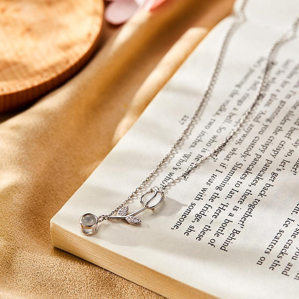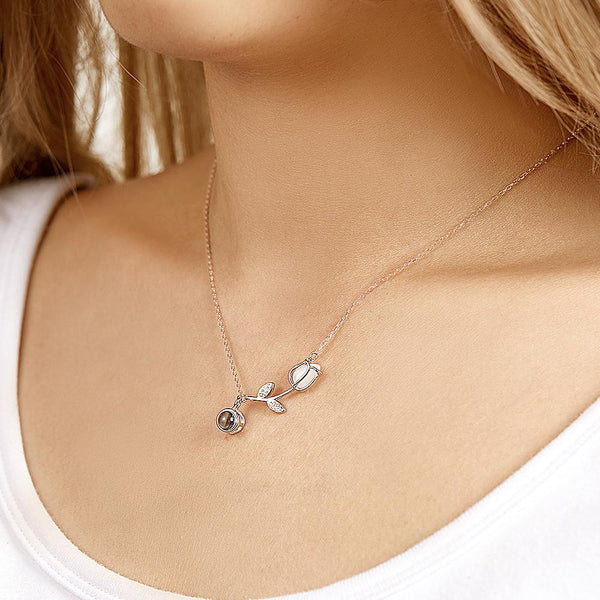 Tulip Photo Projection Necklace Personalized Elegant Flower Pendant Jewelry Gift for Her