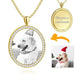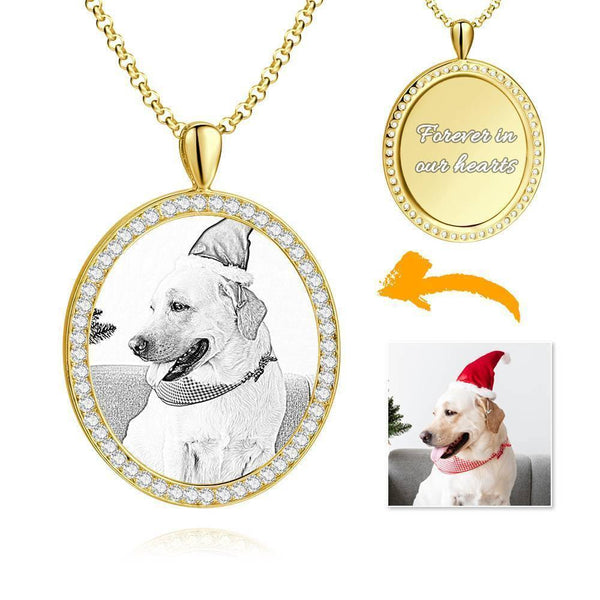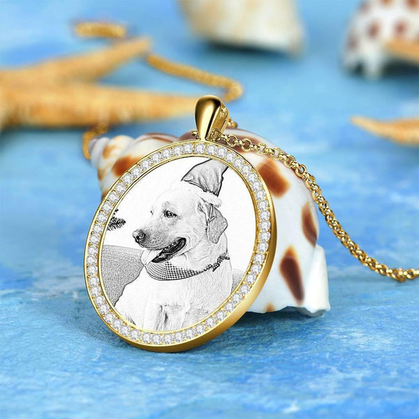 Women's Engraved Personalized Rhinestone Crystal Shield Shape Photo Necklace 14K Gold Plated Golden - Sketch