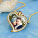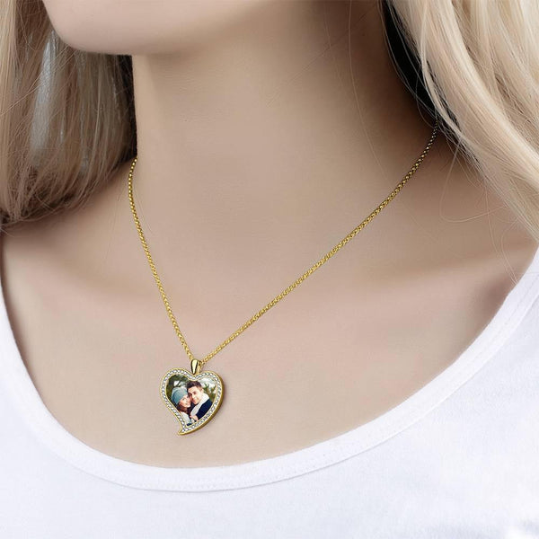 Women's Personalized Rhinestone Crystal Love Heart Shape Photo Engraved Necklace 14K Gold Plated Golden - Colorful