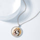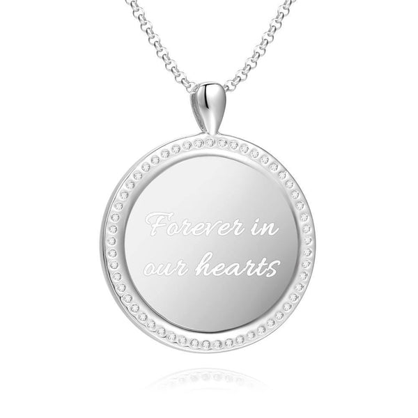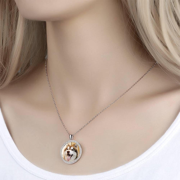 Women's Personalized Rhinestone Crystal Round Shape Photo Engraved Necklace Platinum Plated Silver - Colorful