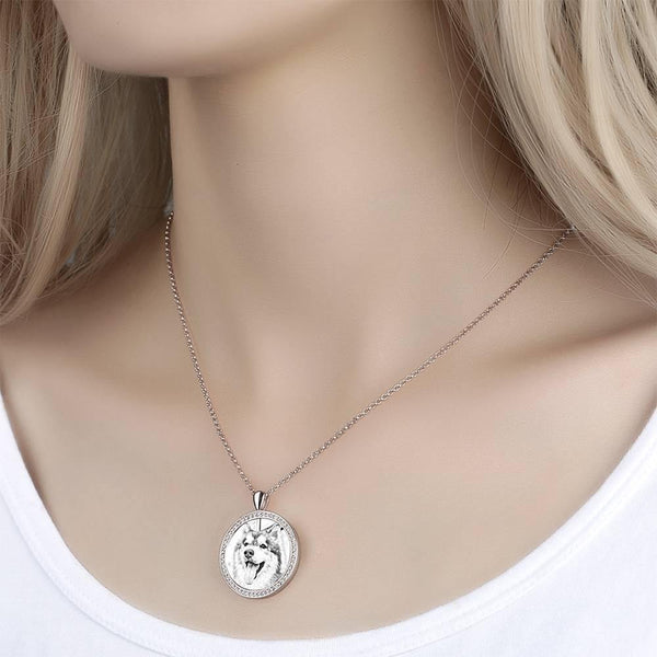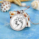 Women's Personalized Rhinestone Crystal Round Shape Photo Engraved Necklace Platinum Plated Silver - Sketch