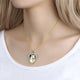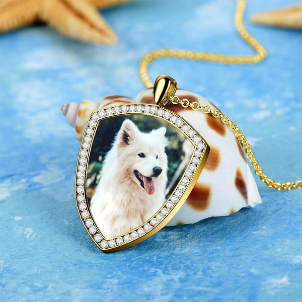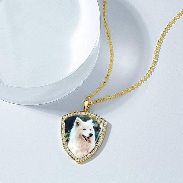 Women's Personalized Rhinestone Crystal Shield Shape Engraved Photo Necklace 14K Gold Plated Golden - Colorful